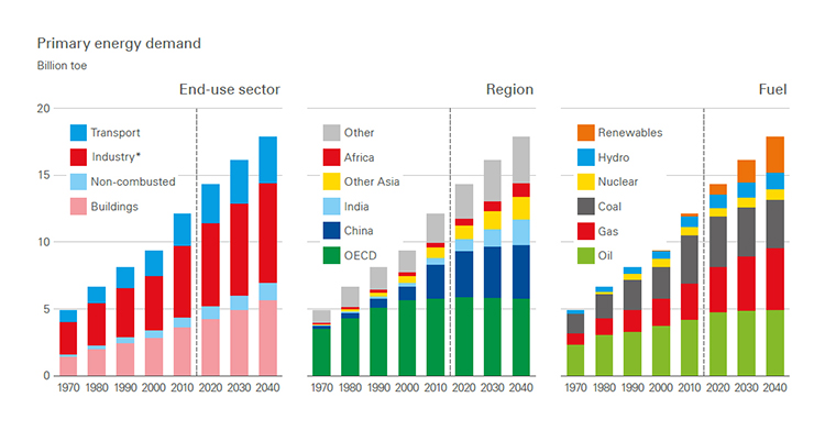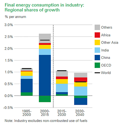In addition, although China's overall energy consumption growth rate is about to slow down, its total volume will remain in a leading position. China's energy market would become twice of the Indian market by 2040.