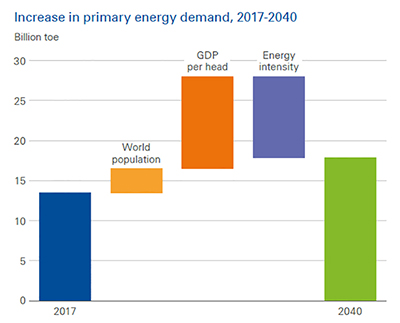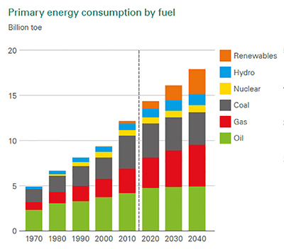 As shown in the chart above, due to the decreasing growth in global population, and the rapid growth of energy utilization, the rate of global energy growth has dropped from 2% per year in the previous 20 years to 1.2% in the next 20 years.